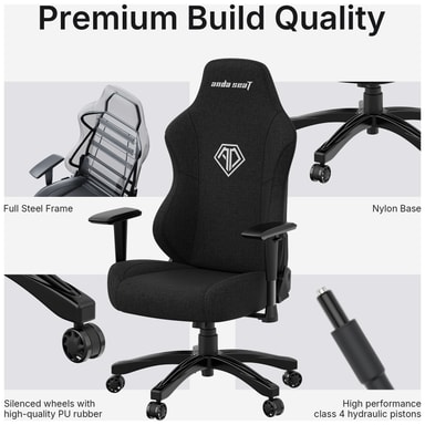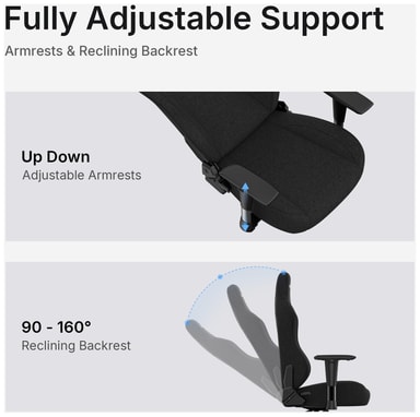 AndaSeat Phantom 3 gamingstol med elegant sort stoffdesign gir deg premium komfort og justerbarhet med et racer-stillutrykk. Stolen er utstyrt med hydrauliske nitrogenstempler, som gir jevn og stabil justering av høyde, og 2D-armlensjusteringer og vipping opp til 160° for å passe til forskjellige bordhøyder og personlige preferanser. Stolens design promoterer riktig sittestilling og komfort, og reduserer belastningsskader ved langvarige gamingøkter. Støtter vekt på opptil 110 kg.