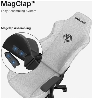 Montering av stolen er en enkel prosess uten behov for skruer, takket være MagClapAD+. Den har magnetiske klips på begge sider.
