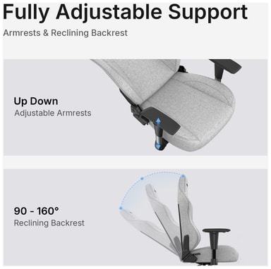 Stolen har et tykkere skum med høy tetthet som former seg etter kroppsformen din og gir deg optimal komfort. Den H-formede nakkestøtteputen og de ekstra korsryggputene gir ekstra nakke- og ryggstøtte.