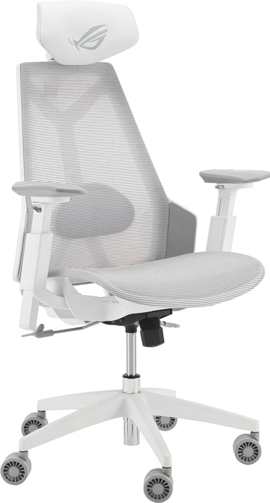 Med et design som minner om et elegant eksoskjelett, leverer den dristig ROG-stil med et høyspennings pustende meshsete og ryggstøtte, alt støttet av en solid nylonramme og metallbase. Meshkonstruksjonen fremmer kjøling under intense spilløkter, mens myke PU-skumputer sikrer langvarig komfort.