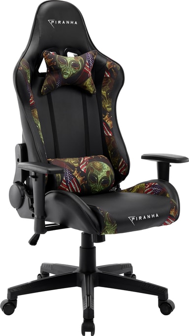 Piranha Bite gamingstol sørger for at du er komfortabel under hele gamingøkten. Med full vippemekanisme, utvidet hodestøtte, PU-skinn med prikket sete og puter for støtte av nakke og korsrygg, vil du enkelt vinne over konkurrentene.Les mer om produktet