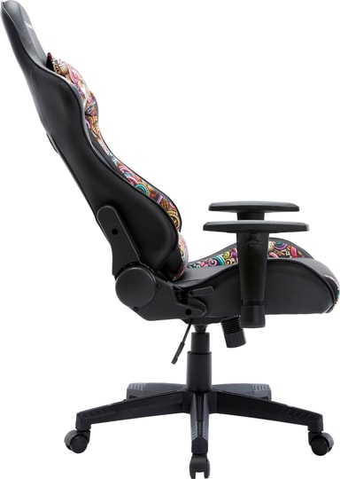 Den sorte fargen utfylles av det fargerike iskremdesignet til stripene, korsryggstøtten og hodestøtten.