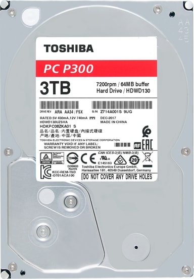 Toshiba P300 intern harddisk har egenskapene man trenger i et hjemmeoppsett. Den kobles til via SATA 3 for rask filoverføring. Du kan enkelt lagre store mengder med data hjemme som bilder og videoer med denne harddisken.