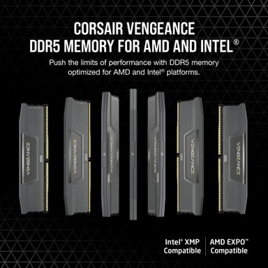 Corsair Vengeance DDR5 RAM 16GB (16GB x1) 6000 MT/s CL36 gir rask 6000 MT/s-hastighet og CL36 signalforsinkelse. Det har integrert spenningsregulator via iCUE, en elegant kjøleribbe i aluminium og Intel XMP 3.0/AMD EXPO-støtte for enkel overklokking.Les mer om produktet