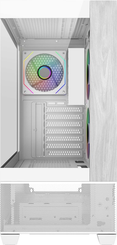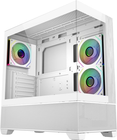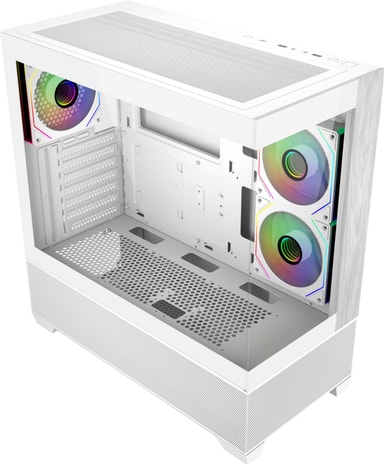 Med 270° herdet glass-paneler med sømløst avfaset design lar dette kabinettet deg vise frem dine premium komponenter og RGB-belysning med stil. Glasspanelene gir en klar og oppslukende visning, og gjør bygget ditt til midtpunktet i ethvert rom.