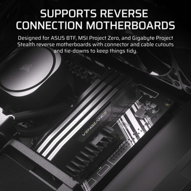 Designet for sømløs integrasjon med iCUE LINK-systemet, FRAME 4000D har kabelkroker, økte festepunkter og en dedikert monteringslomme for en iCUE LINK System Hub.