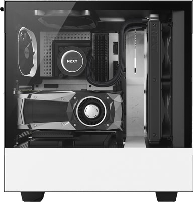 NZXT H500i er et kompakt ATX PC-kabinett som vil passe på enhver pult. Med sitt moderne design og sidepanel i herdet glass vil du få full oversikt over oppsettet ditt. Takket være den klassiske NZXT kabelføringen kan du være sikker på at kablene ser profesjonelle og ryddige ut. Sammen med Smart Device V2, som tilbyr støtte for RGB, kan du virkelig personalisere kabinettet ditt. Det har også vertikale monteringsspor for grafikkort. (PCIe Riser selges separat).