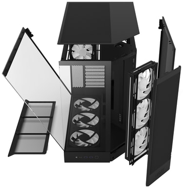 NZXT H9 Flow RGB+ 2025 PC-kabinett gir deg mengder av plass og kjølemuligheter. Med tre inkluderte vifter, omslyngbare paneler av herdet glass og dobbelkamret design, gir dette kabinettet optimal kjøleeffekt med et lekkert utseende.Les mer om produktet