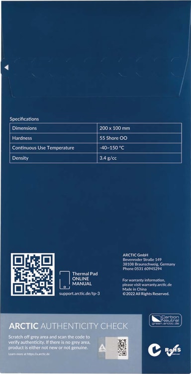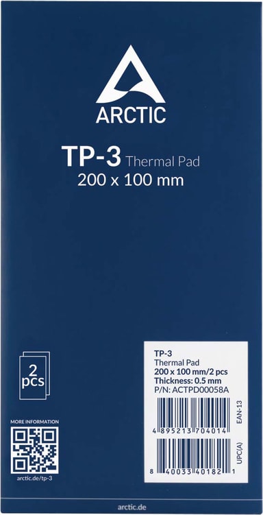 Arctic TP-3 varmepute (200x100mm, 0,5mm) gir økt kjøleeffekt ved å bygge bro mellom varmekilder og varmespredere ved å bruke høy termisk konduktivitet, myk tilpasning og enkel påføring, som gir optimal beskyttelse for elektroniske komponenter.Les mer om produktet