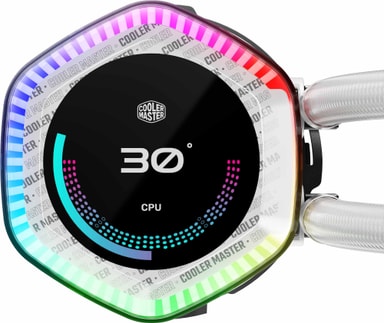Denne CPU-vannkjøleren har et elegant, moderne design med en 2,1-tommers LCD-skjerm og Cooler Masters karakteristiske halo-belysning. De rene linjene, den solide konstruksjonen og den tilpassbare skjermen gjør den til et fremtredende element i enhver PC-oppsett.