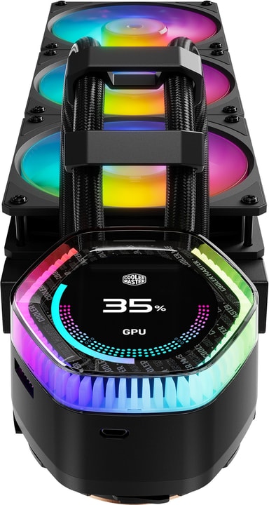 Denne CPU-vannkjøleren har et elegant, moderne design med en 2,1-tommers LCD-skjerm og Cooler Masters karakteristiske halo-belysning. De rene linjene, den solide konstruksjonen og den tilpassbare skjermen gjør den til et fremtredende element i enhver PC-oppsett.