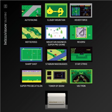 Intellivision Collection 2-kassetten til Evercade inneholder 12 elskede Intellivision-spill, inkludert det legendariske rollespillet Tower of Doom og den klassiske dungeon crawler-en Cloudy Mountain. Denne samlingen er kompatibel med alle Evercade-enheter som kjører den nyeste tilgjengelige fastvaren (Handheld, Evercade VS, Evercade VS-R, Evercade EXP, Evercade EXP-R, Evercade Alpha) og Super Pocket-konsoller.