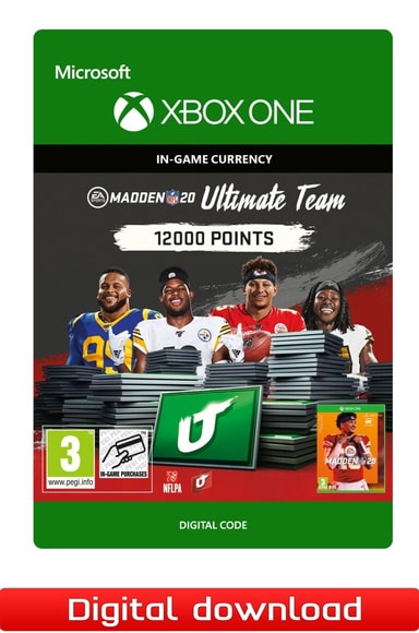 Feel like an NFL Superstar in Madden NFL 20. Jump start on the competition with 12000 Madden Ultimate Team Points. Compete in the ultimate NFL fantasy team-building mode featuring your favourite NFL players from the past and present. Play games, collect rewards, and upgrade your team with daily, fun and engaging challenges with live NFL content all year-long.