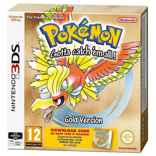 Pokemon Gold Version kommer til Virtual Console på Nintendo 3DS! Dette spillet, som debuterte som en Game Boy Color-tittel i Japan, blir gjenskapt i en Virtual Console versjon slik at skjermen vises akkurat som det gjorde på Game Boy Color. Denne spillboksen inneholder en nedlastingskode for Pokemon Gold versjon (ingen spilldisk er inkludert). Spillet må lastes ned fra Nintendo e-Shop ved hjelp av nedlastingskoden vedlagt.