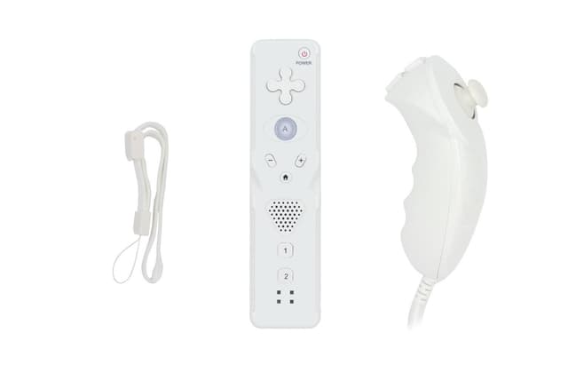 Trådløs spillkontroller og Nunchuck kompatibel med Wii. Kontrollen har en rekkevidde på 8 meter og har en innebygd CMOS-sensor som oppdager infrarød og bevegelsene dine. Slå av kontrollen raskt og enkelt med Hjem-knappen. Den er også utstyrt med bevegelsessensering med 3 akser og har vibrasjonsfunksjon, innebygde høyttalere og minne og kan lagre Mii-bildene dine.