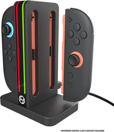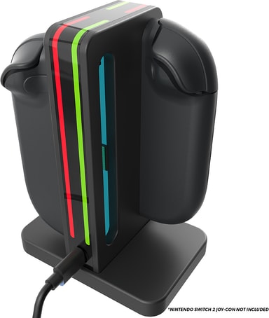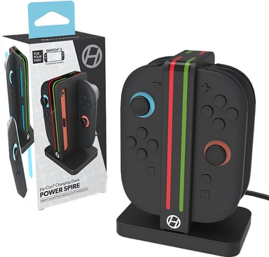 Hyperkin Power Spire Switch 2 ladestasjon gjør det mulig å lade opptil 4 Joy-Con-kontrollere samtidig, har magnetisk snap-in-dokking, USB-C til C hurtigladetilkobling og LED-indikatorer som tydelig viser ladestatus.Les mer om produktet