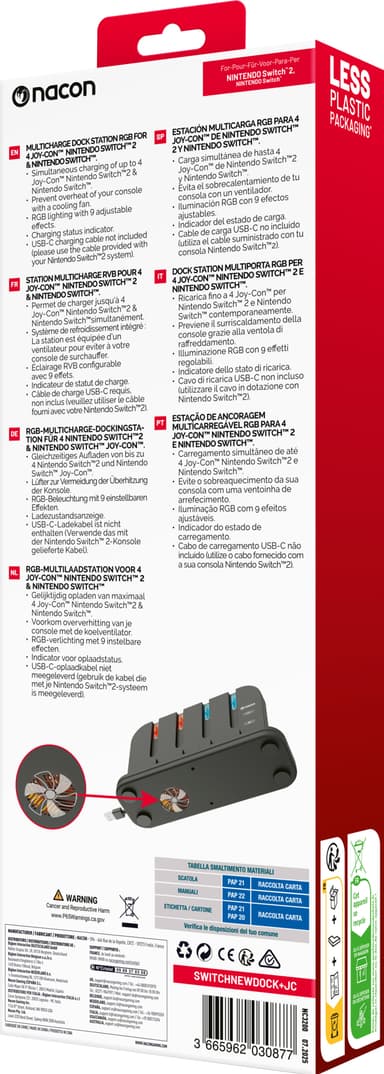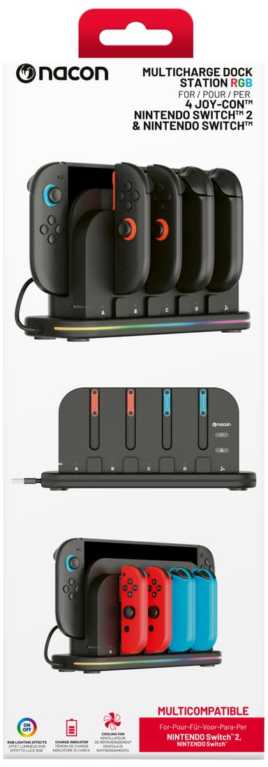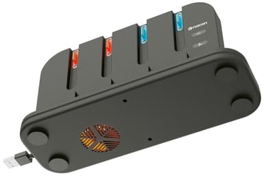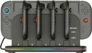 Nacon Switch 2 og kontrollere ladedokk lar deg lade opp din Nintendo Switch eller Switch 2 samtidig med opptil fire JoyCon-kontrollere. Den er utstyrt med RGB-belysning, konsollkjølevifte, og USB-strømtilkobling for rask lading.Les mer om produktet