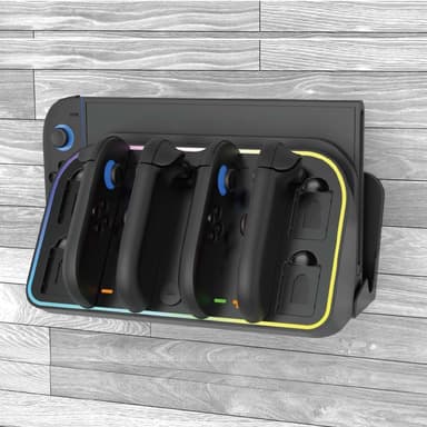 Organisert ladestasjon: Hold SWITCH 2-konsollen og tilbehøret pent organisert med dette veggmonterte ladestativet. Slutt på rotete plasser eller feilplasserte gjenstander. Dette stativet gir et dedikert sted for konsoll, kontroller og annet tilbehør, slik at alt alltid er innen rekkevidde. Det elegante designet kompletterer ethvert spilloppsett, og gir et snev av raffinement samtidig som det maksimerer plasseffektiviteten. Nyt et ryddig og organisert spillområde med denne praktiske lade- og oppbevaringsløsningen.