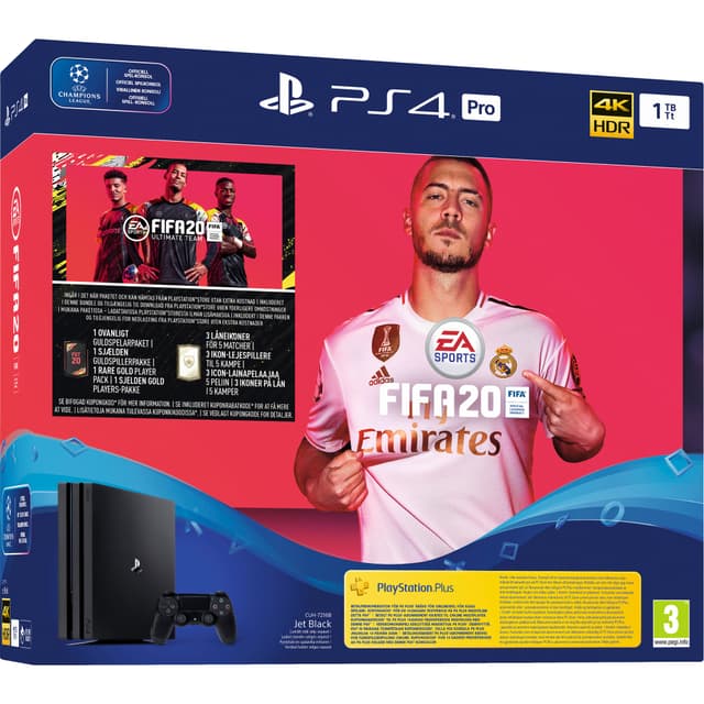 PlayStation 4 Pro underholdningssystem gir forbedret ytelse og mer fornøyelige og realistiske spillopplevelser. Nyt imponerende 4K UHD-oppløsning og HDR-teknologi i kompatible spill. Konsollen leveres med spillet FIFA 20.Les mer om produktet