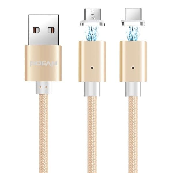 Hendig og slitekraftig 3-in-1 kabel med flettet nylondeksel, muliggjør lading og data sync av flere ulike enheter enten med Micro USB eller Type-C kobling.