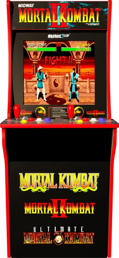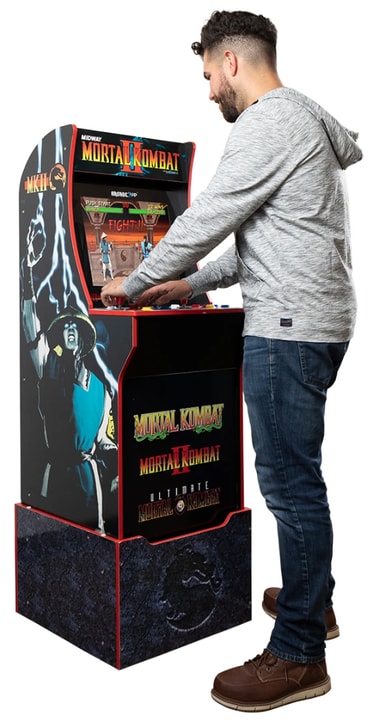 Arcade1Up Mortal Kombat arkademaskin bringer tilbake de gode gamle fartsfylte gatekampene, fylt med unike kombinasjoner og angrep. Spill Mortal Kombat, Mortal Kombat 2 og 3 med venner og familie, og gled deg over autentiske kontrollere og 17" LCD-fargeskjerm. Kabinettets vintage-design passer inn i ethvert rom i retrostil, og du kan ganske enkelt koble den til en stikkontakt og starte spillingen.