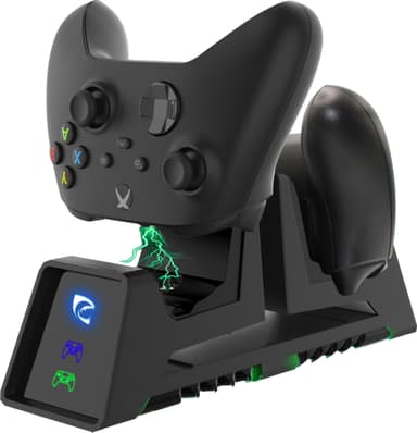 Piranha x GhostGear Xbox universallader er en dobbel ladestasjon for kontrollere som er kompatibel med Xbox X og Xbox One. Har magnetiske induksjonsputer og LED-indikatorer for ladestatus som effektiviserer spilloppsettet ditt.Les mer om produktet