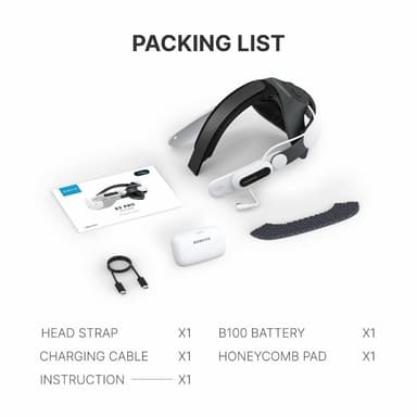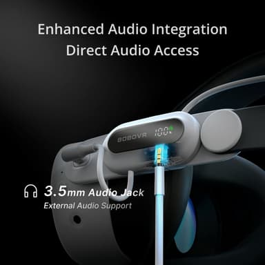 BOBOVR E3 Pro for Meta Quest 3/3S hodestropp med 10000mAh batteri VR-hodesetthodebånd【Offisiell sertifisering】 Laget for Meta-sertifisert hodestropp designet spesielt for Meta Quest 3/3S.【Optimalisert design】 Lett passform optimalisert for aktiv VR-sLes mer om produktet