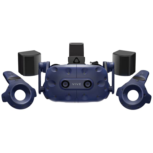 Med HTC Vive Pro VR komplett sett får du HTC Vive Pro headsett, to HTC Vive-kontroller og to HTC Vive basestasjoner.