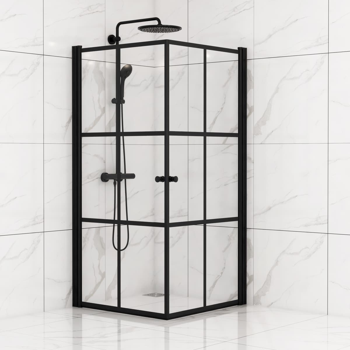 Dusjdør Tiana er en solid dusjdør på 80 cm bredde i 6 mm herdet glass. Disse rutete dusjdørene i Tiana-serien har et røft design som både kan passe inn på hyttebadet eller en leilighet med industriell moderne design. Leveres som sett av to dusjdører.