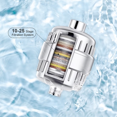 Avansert filtrering: Dette dusjfilteret bruker et 10-25 lags filtreringssystem for å effektivt redusere klor, tungmetaller og annen forurensning fra dusjvannet ditt, noe som gir deg en renere og sunnere dusjopplevelse.