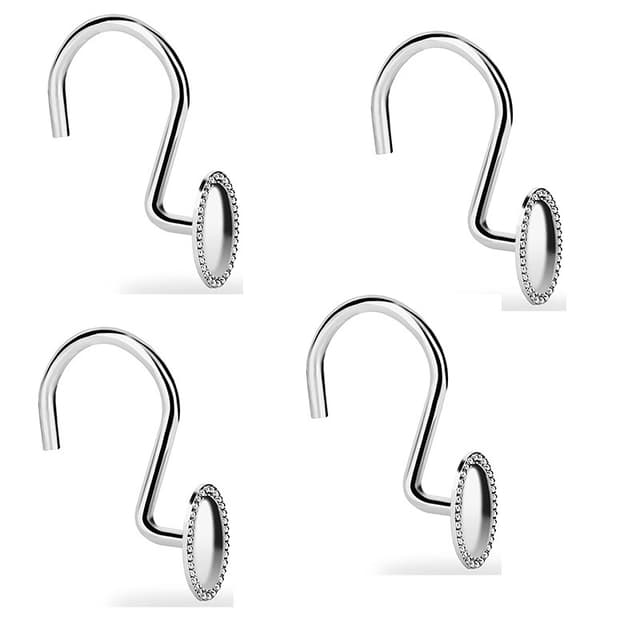 Rustbestandig og solid: Disse dusjgardinkrokene er laget av sinklegering av høy kvalitet, som sikrer langvarig ytelse og motstand mot både rust og korrosjon, selv i fuktige baderomsmiljøer.