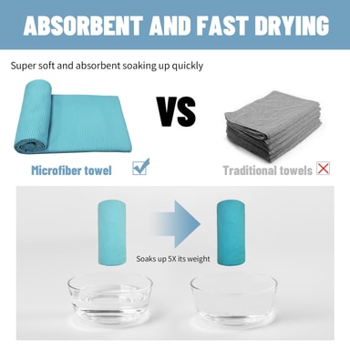 Rask absorpsjon: Dette håndkleet er designet for rask vannabsorpsjon, takket være sin unike blanding av ultrafine fibre, bestående av 90 % polyester og 10 % nylon. Det sikrer at du kan tørke av raskt og komfortabelt etter en forfriskende dusj eller svømmetur.