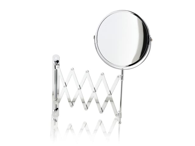 Speil med uttrekk Materiale: metall med krom look str. Ø17cmUttrekk total lengde 32cmInkl. x2-forstørrelse på den ene sidehvert pakkes i blister pakning med Scandinavia Bathroom inlayLes mer om produktet