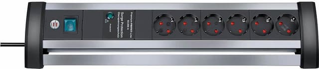 Brennenstuhl Office Line, grenuttak med 6xCEE 7/4 stikkontakt, 1xCEE 7/7 tilkobling, sentral bryter, overspenningsbeskyttelse, 3m kabel, stikkontakt beskyttet, aluminium / plast, svart / sølv