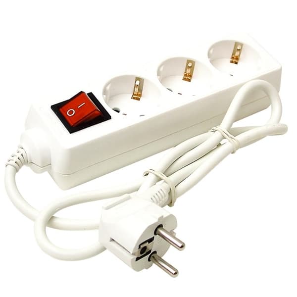 Grenuttak 3-veis Jordet 1m med bryter -hvit -1m -Kabeltype: H05VV-F -Kabeldimensjon (mm2): 3G1.0 -Spenning (V): 230 -Effekt (W): 3,500