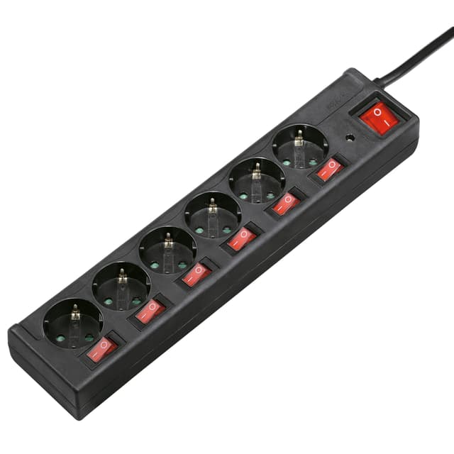 Hama 6-veis grenuttak med beskyttelse mot overspenning og individuelle strømbrytere for hvert uttak.Les mer om produktet