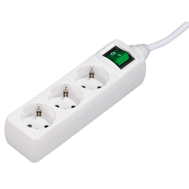 HAMA Grenuttak 3-veis med bryter Hvit For tilkobling av opptil tre elektriske enheter Jordede stikkontakter 45° vinklet 2-veis bryter med grønn belysning Med barnesikring GS godkjentLes mer om produktet