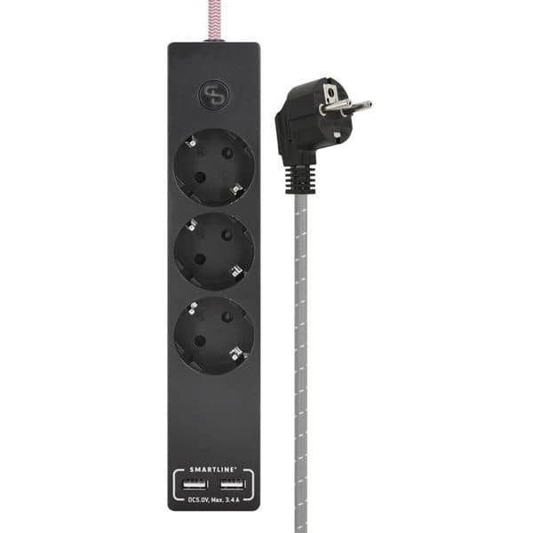SMARTLINE Forgreningskontakt 3-veis 2x USB 3A Stoffledning