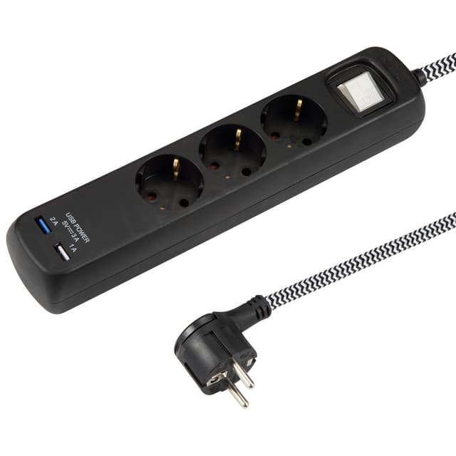 Smartline strømforgrener med to USB-porter lar deg drifte tre ulike enheter via EU-uttakene og to enheter via USB-portene. For ekstra sikkerhet og strømsparing er strømforgreneren utstyrt med en av/på-byter. Den 1,5 meter lange flettede ledningen har et stilig sort og hvitt sikksakk-mønster.