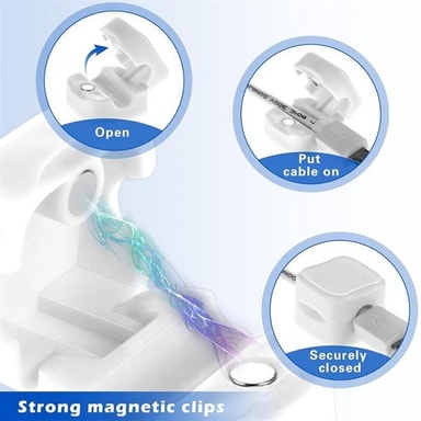 Revitaliser arbeidsområdet med vår magnetiske kabelholder, designet for å forenkle håndteringen av kabler både hjemme og på kontoret. Den innovative magnetiske åpnings- og lukkemekanismen lar deg enkelt sette inn og fjerne kabler med bare én hånd. Åpne holderen, plasser kabelen, og den lukker seg automatisk for å sikre kablene trygt på plass uten risiko for at de detter ut.