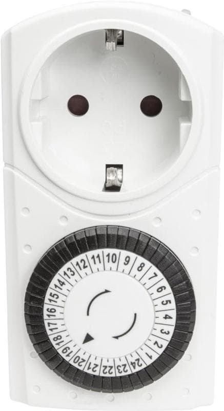 Smartline timer med stikkontakt er en mekanisk 24-timers timer som lar deg styre innendørs apparater, og slå dem av eller på etter valgt tidspunkt. Den settes enkelt opp takket være knappene, og tilbyr deg 30-minutters intervaller. Den er perfekt for kaffetraktere, strykejern eller rettetang. Pakken inneholder to timere.