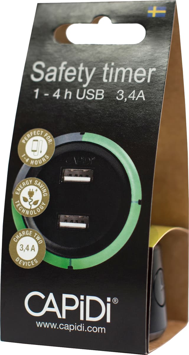 Lade telefonen og nettbrettet ditt samtidig med CAPiDi USB sikkerhetstimer. Den har to 3,4 A USB-porter og en timer. Timeren kan stilles inn i 4 trinn fra 1 til 4 for å spare strøm.Les mer om produktet