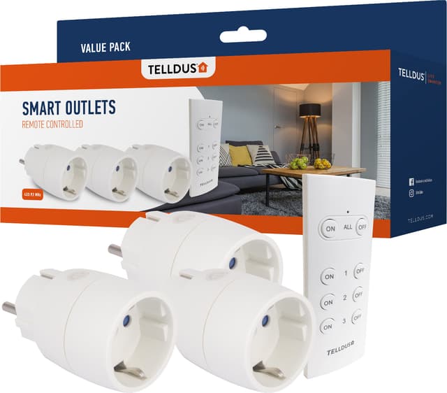 Utstyr smarthjemmet ditt med en trepakning med smarte stikkontakter fra Telldus. De leveres med en praktisk fjernkontroll og gjør det mulig å håndtere 3680 W og 16A, noe som lar deg bruke en rekke forskjellige apparater i smartboligen din. I stedet for fjernkontrollen kan du også bruke Telldus-appen for å styre kontaktene. Appen kan lastes ned gratis til både iOS og Android.