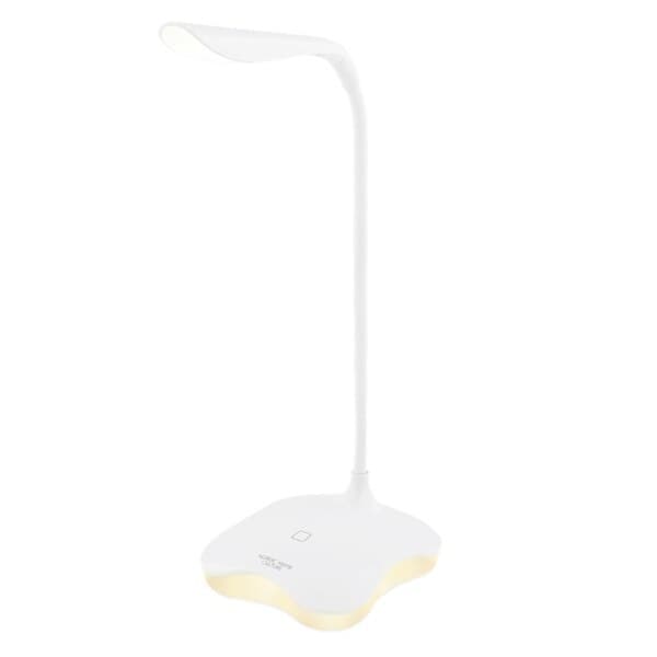 Enkel men stilig bordlampe med en 25cm lang gåsearm som kan bøyes etter behov. Lampen har tre ulike lysnivåer avhengig av om du vil ha en behagelig lesebelysning eller en mer dempet belysning. Om du holder in On/Off-knappen i tre sekunder aktiveres den gule LED-lampen i basen som gir en mer varmere belysning som passer bedre om kvelden.