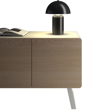 Lampen er laget av svært robust, belagt stål, noe som sikrer lang levetid. I tillegg er undersiden av den stabile lampefoten fullstendig dekket med skånsom filt, slik at det ikke oppstår riper på sensitive overflater.