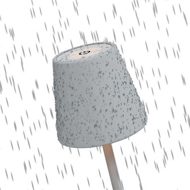 Tack vare stänkvattenskyddet (kapslingsklass IP44) är bordslampan också perfekt för uteplatsen, balkongen eller trädgården