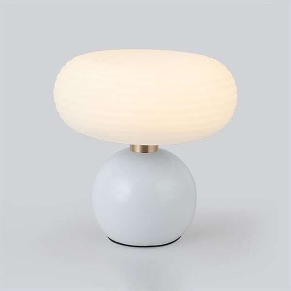 Lampen måler 200 mm i høyde og diameter, med en sokkeldiameter på 120 mm, noe som gjør den ideell for skrivebord, nattbord eller som dekorativ belysning i stuen. Den hvite fargen og det stilrene designet gjør at lampen passer inn i de fleste interiører.