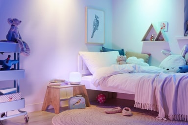 Med forhåndsinnstilte lysoppskrifter, valget mellom 16 millioner farger og en dimmefunksjon er denne bordlampen alltid klar for å skape den riktige atmosfæren, uansett om du vil slappe av etter en lang dag eller trenger å holde fokus.