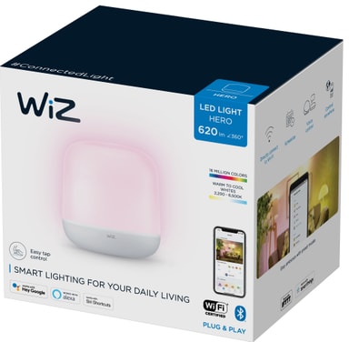 Wiz Hero portabel bordlampe 871951455171800 vil hjelpe deg skape den riktige atmosfæren for alle anledninger. Uansett om du vil våkne opp full av energi eller slappe av har Hero-lampen kontroll takket være forhåndsinnstilte moduser, dynamiske lyseffekter og valget mellom 16 millioner farger. Du kan videre styre lampen uanstrengt kun ved hjelp av smarttelefonen din eller med enkle stemmekommandoer.