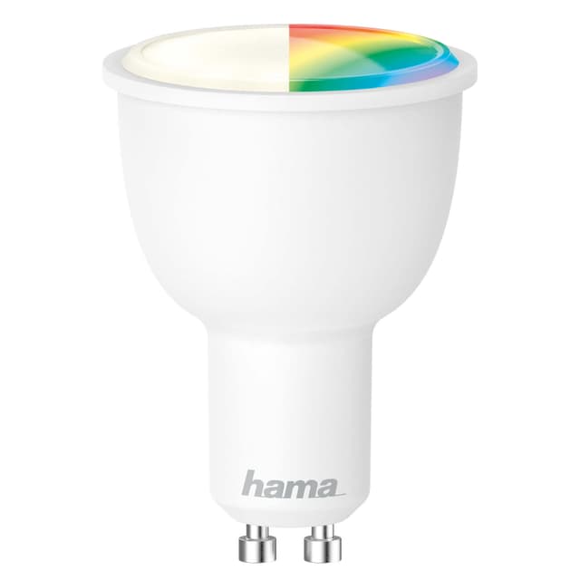 Wifi led-lampe gu10 rgb 4.5w. Multifunktionell wifi led-lampa for bruk som lyskilde. Fargetemperatur: 2700k med et utvalg av 16 millioner forskjellige farger. Kontroll via gratis app eller via """"amazon alexa"""" og """"google home. Flere lamper kan styres samtidig. Innstillinger: f.eks slå på / av, trinnløs dimbar, fargeendring. Ifttt-kompatibel*multifunksjonell wifi led-lampe til bruk som lyskilde, strømbelysning eller for å skape en bestemt belysningsatmosfære. Led-lampen er integrert i ditt eget wifi-nettverk via den gratis """"hama smart solution"""" -appen. Du kan også kontrollere lysene dine via """"amazon alexa"""" og """"google home."""" dennee wifi-lampen fyller rommet ditt med svært spesiell stemningsbelysning - en avslappende grønn eller fantasifull fiolett, lys eller dimmet for å sette stemningen. Kontroller wifi-lampen din fra din komfortable sofa. Spesifikasjoner fargeproduksjonsindeks ra (min.): 80 lys farge: flerfarget energieffektivitetsklasse: a + (skala fra a ++ til e, optimal verdi: a ++) lampestrøm: 42 ma nominell strålevinkel 120 ° nominell lyseffekt: 300 lm nominelt strømforbruk: 4,5 w driftsspenning: 230 v størrelse og vekt diameter 50 mm høyde 70 mm nettovikt 41 gr * ifttt er kort for """"hvis dette, da det"""". Om """"om a, så b"""" - dette er en internettjeneste som via en app og et nettsted gir deg mulighet til å lage rutiner for de fleste ting du kanskje tenker på - og dermed forbinde produkter og tjenester på en måte som ikke har vært tidligere vært mulig.